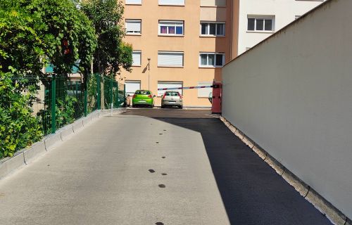 Location d'une place de parking de type plein ciel au milieu d'un ensemble d'immeuble.